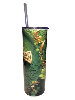 This 20oz stainless steel tumbler features a striking green and gold Celtic cross design wrapped around the tumbler. With double-wall insulation, it keeps drinks hot for 4.5 hours and cold for 10+ hours. Comes with a coffee slide lid and a reusable straw—perfect for those who love Celtic and Irish culture!