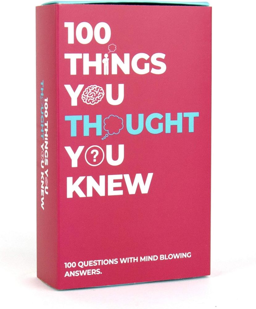 A mind-bending trivia game with 100 surprising questions that challenge everything you think you know. Fun, fast, and guaranteed to blow your mind. Suitable for 2+ players. Comes in a colourful box.