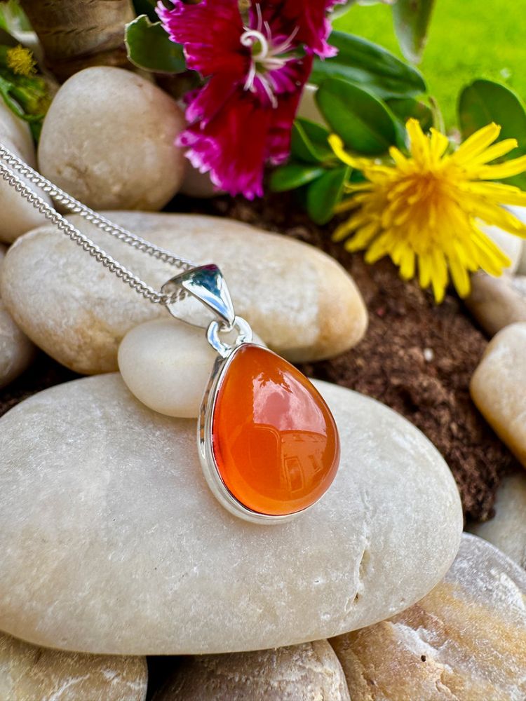 Pear drop Carnelian bezel set in Sterling Silver Necklace