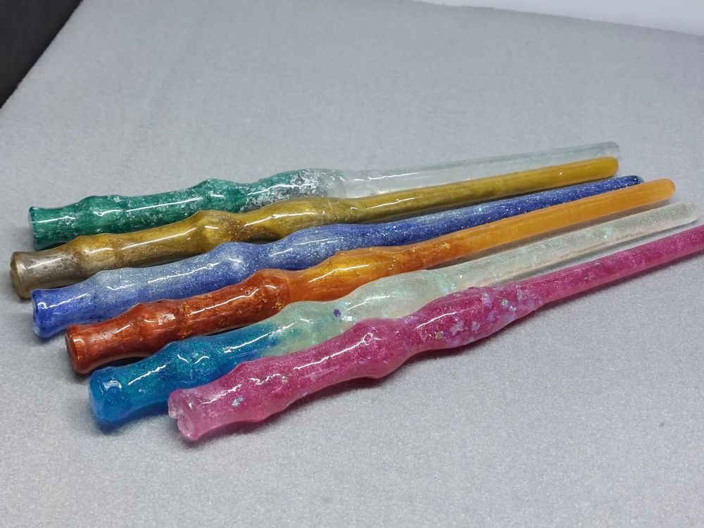 Wands (Shape n1) Different Colors Ready to Go & Custom Made - Sceptre, Staff, Bâton Magique Made with resin from a Carved Wooden Magic Stick