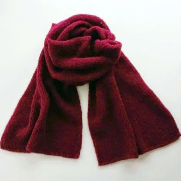 Burgundy, our finest wool and silk scarves Ireland collection is hand knitted from an exclusive blend of alpaca Wool ( highest quality) and Silk yarn.(77% Alpaca – 23% Mulberry Silk).