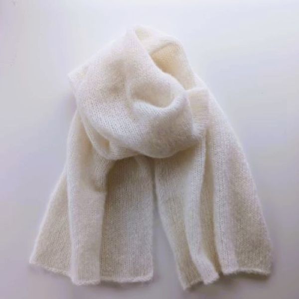 Soft White, our finest wool and silk scarves Ireland collection is hand knitted from an exclusive blend of alpaca Wool ( highest quality) and Silk yarn.(77% Alpaca – 23% Mulberry Silk).