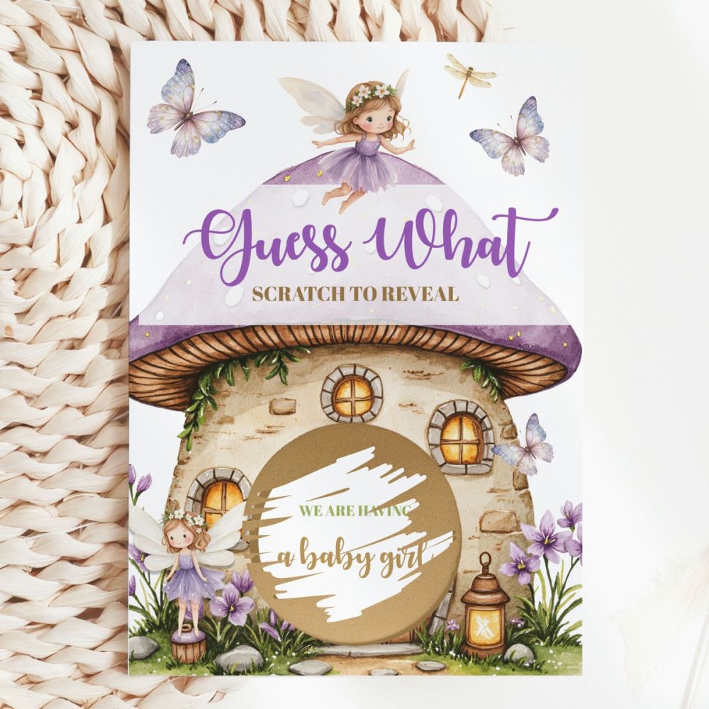 Baby Girl Gender Reveal Scratch Card – Guess What? | Fairy Mushroom House