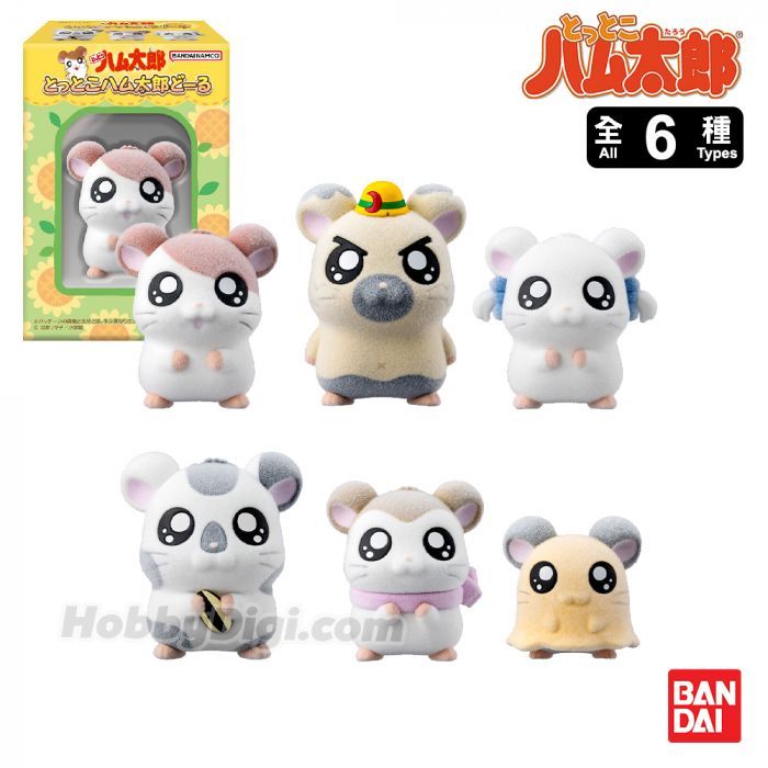 Bring the fuzzy charm of your favourite Tottoko Hamtaro characters to life with this genuine Bandai Hamtaro Hamster Collection Ornament Set. This adorable 6-piece kawaii anime figure collection features beautifully detailed mini hamster characters, each standing approximately 4cm tall and finished with a soft flocked texture for an irresistibly cute feel. From the adventurous Hamtaro to his sweet hamster friends, each figure comes with its own display stand, making them perfect for desks, shelves, gaming setups, or anime collections. Please note: characters are packed at random, adding a fun surprise element for collectors and traders.