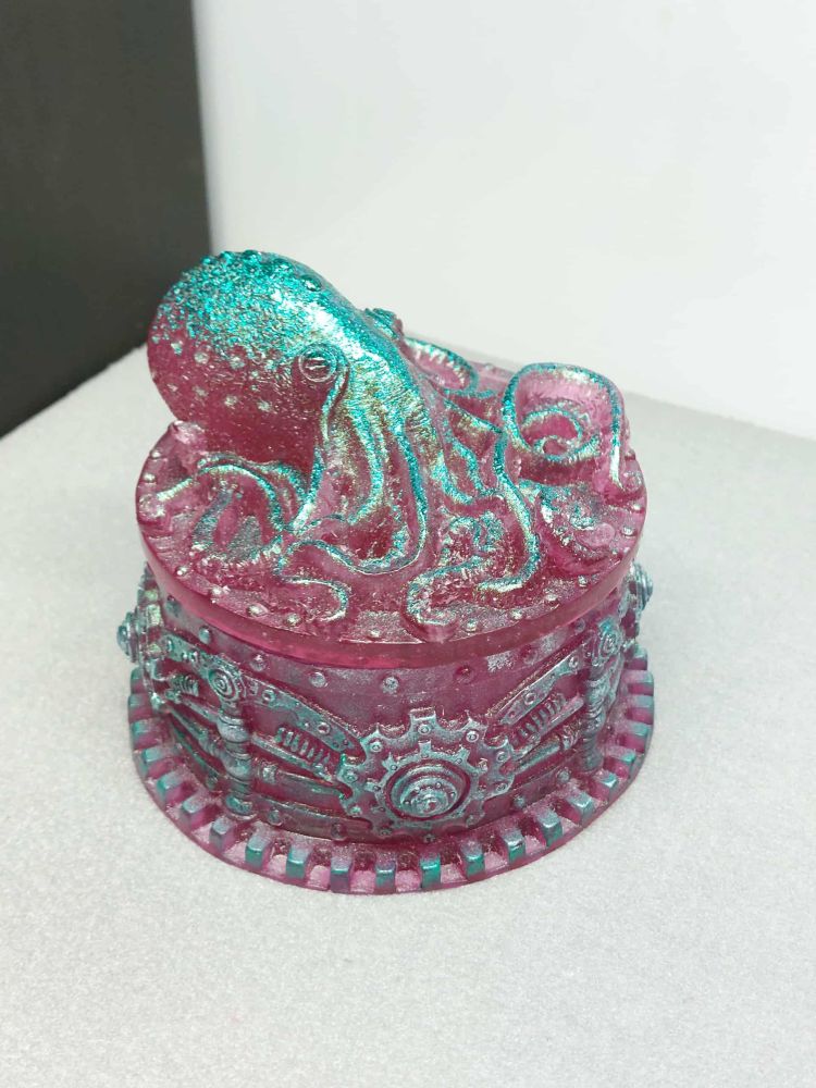 Boxtopus is a steam punk themed box, featuring an octopus on the lid with excellent detailing, along with gears and cogs. Steampunk-style, Victorian Art