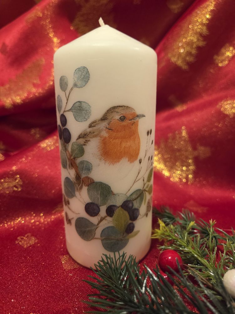 Christmas Candles nicely decorated with decoupage - Robin
