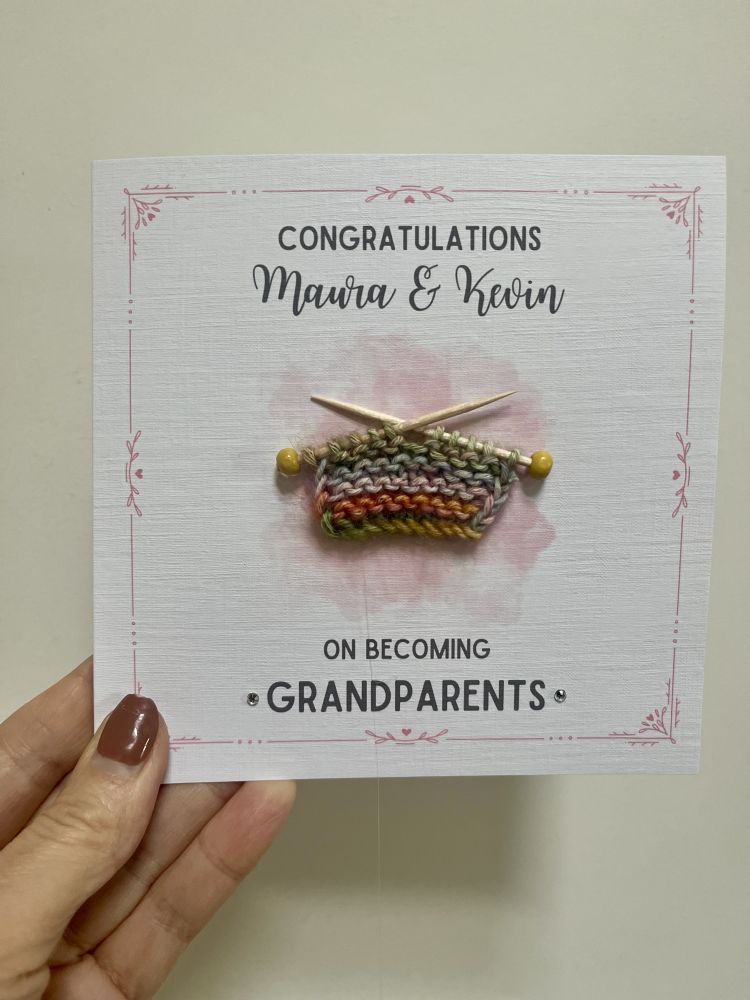 Congratulations on becoming Grandparents Card 5x5 with Wooden Knitting Needles & Wool