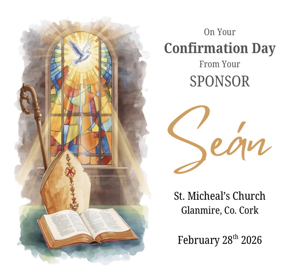 Mark this sacred milestone with a keepsake that will be treasured long after the day itself. This beautiful Confirmation card is a very special gift from a sponsor, created to celebrate faith, guidance, and the journey ahead.