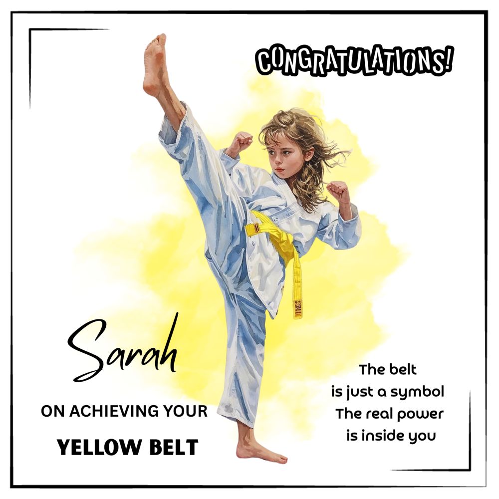 YOUR YELLOW BELT MOMENT! - 6X6 Personalised to Celebrate a Taekwondo Yellow Belt