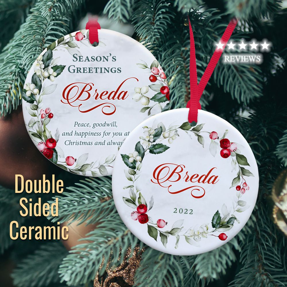 Personalised Individual’s Name Gift – Elegant Wreath (Ceramic Ornament)