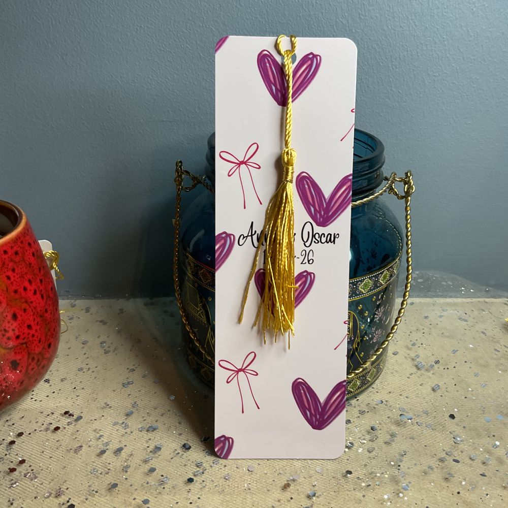 Celebrate your special day with our personalised wedding bookmarks, the perfect keepsake for your guests. Measuring 5.5cm wide and between 15.5cm to 17.5cm long depending on the design, each bookmark is printed on glossy photo paper and double-sided laminated for durability and a polished finish. Featuring a charming tassel, these elegant bookmarks make thoughtful wedding favours or memorable gifts that guests will cherish long after the event. Customise with your names, wedding date, or a special message to add a unique touch to your celebration.