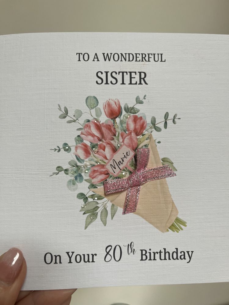 THE BIRTHDAY BOUQUET -6x6 Linen Card Personalised for Any Birthday