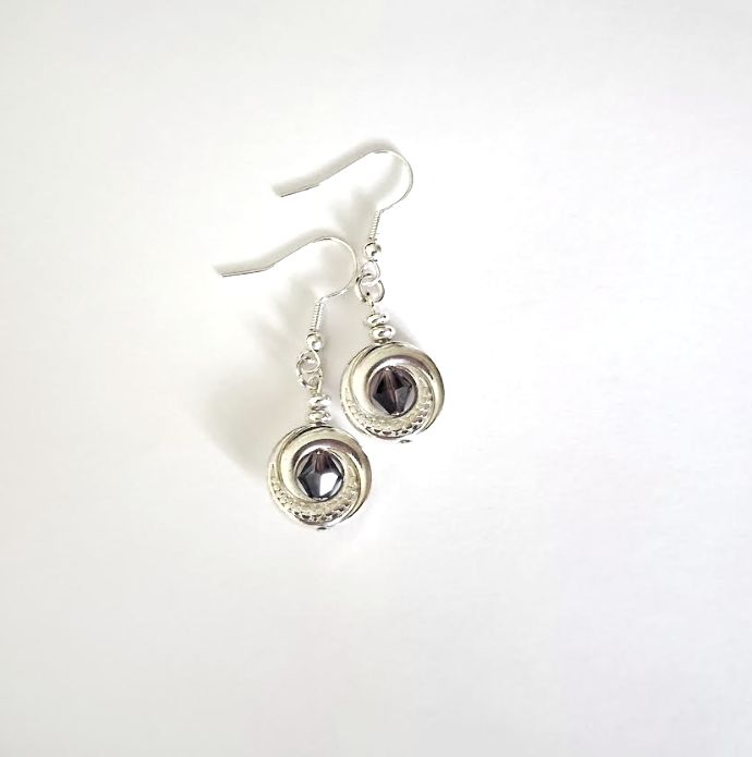 Gorgeous earrings, handmade in Ireland with quality materials. Silver plated frames, with crystal glass bead centres, in deep purple. Silver plated beads and ear hooks. (the ear hooks are nickel free and suitable for sensitive ears). The drop on these earrings is approx. 2.54cm/1in. Light and easy to wear, elegant and bespoke, perfect for gifting or for a personal treat! Made in limited quantities. They arrive in a pretty organza bag, and have free shipping!