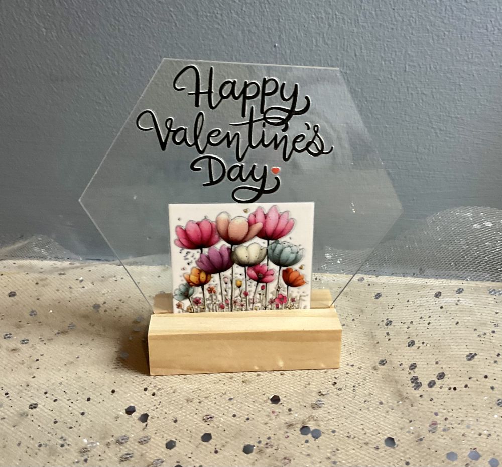Celebrate love and charm with this adorable hexagonal acrylic decoration, perfect as a small Valentine’s Day gift or sweet Mother’s Day surprise. Measuring approximately 9 cm in total height with a 6 cm wooden base, this compact piece adds a delicate touch to any space. Its clear, geometric acrylic shape paired with the natural wood base creates a modern yet warm aesthetic, making it an ideal tabletop or shelf accent. A delightful token to express affection and brighten special moments year-round.