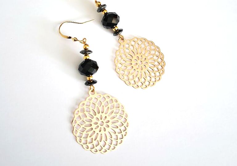 Handmade earrings, created with beautiful gold plated drops, black faceted glass beads, black hematite stones and gold plated beads. The ear hooks are gold plated and nickel free, suitable for sensitive ears. Elevate your style with these gorgeous bespoke earrings.... They arrive in a pretty organza bag, and have free shipping!