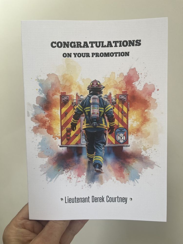 You won’t find these in the shops. This is a one-of-a-kind, bespoke card made for moments that matter, a keepsake worthy of the uniform it celebrates 🚒✨