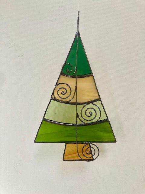 Stained glass funky Christmas tree - designed and handmade by the artist.