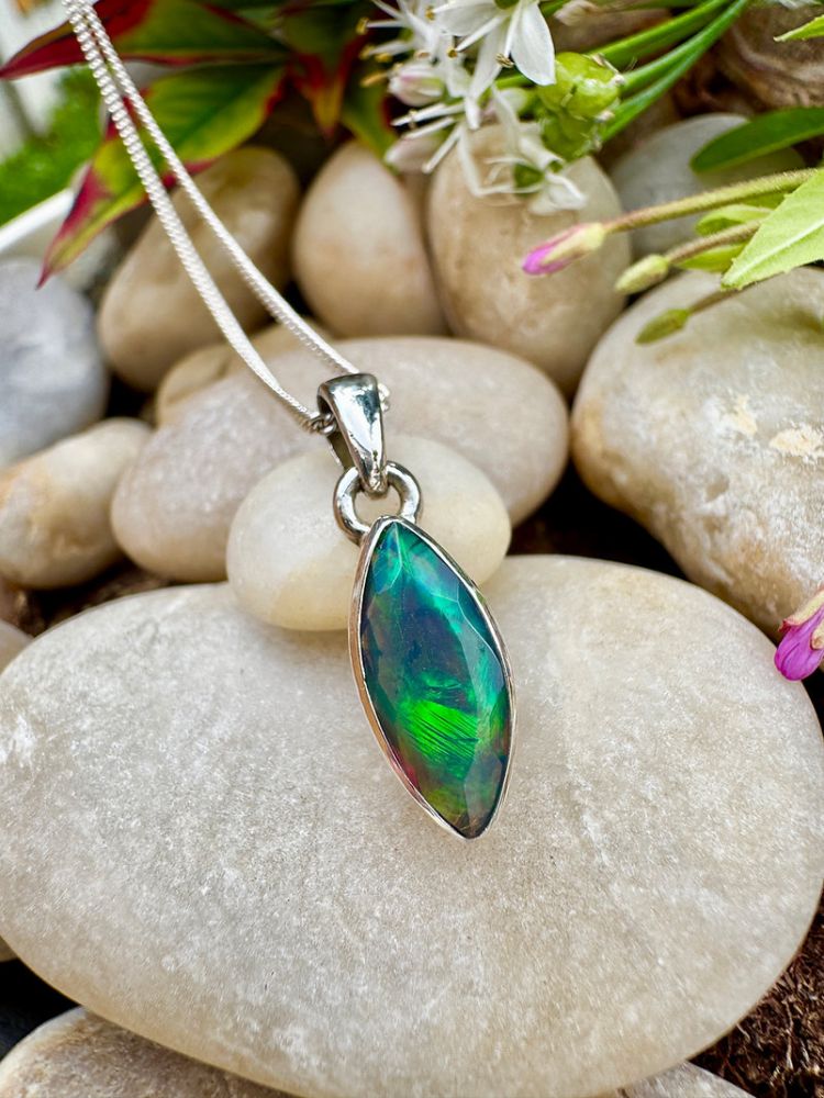 Genuine Australian Chalama Black Opal Sterling Silver Necklace October's Birthstone Jewellery