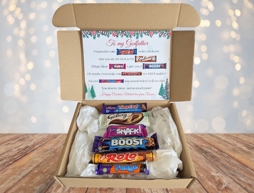 Introducing our Godfather Christmas Chocolate Poem Gift Box! Packed with six delicious full-sized chocolate bars, it’s the perfect way to spread holiday cheer.