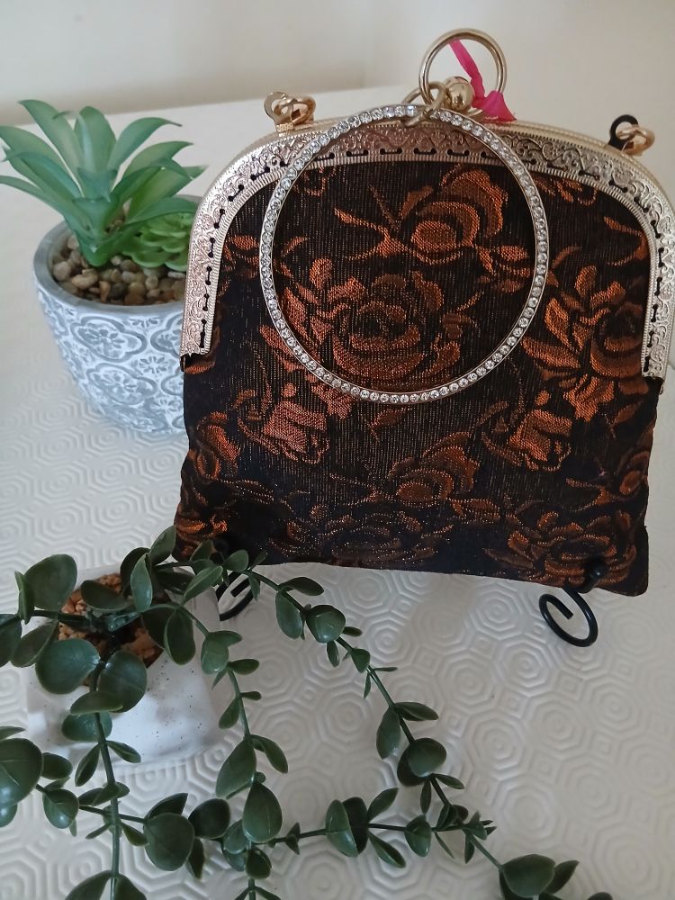 Handcrafted Vintage Inspired Airy Fairy Handbag – Bangle – Burnt Gold Roses