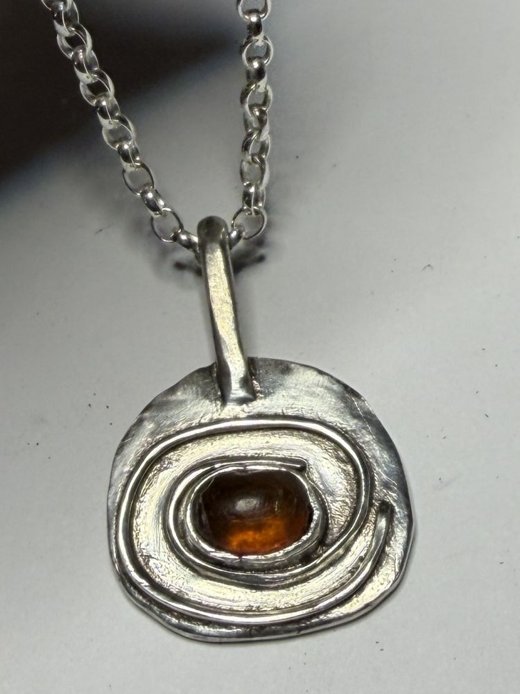 Handmade Sterling Silver pendant with amber stone. Choice of 18 or 20 inch chain