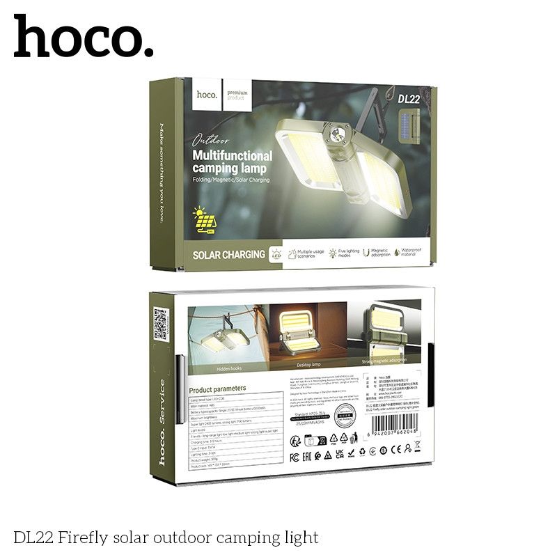 Light up your adventures with the Hoco DL22 Solar LED Camping Lamp, a versatile and reliable lighting solution designed for outdoor enthusiasts and emergency use. Combining high-performance LED illumination with eco-friendly solar charging, this lamp ensures dependable light wherever you go.