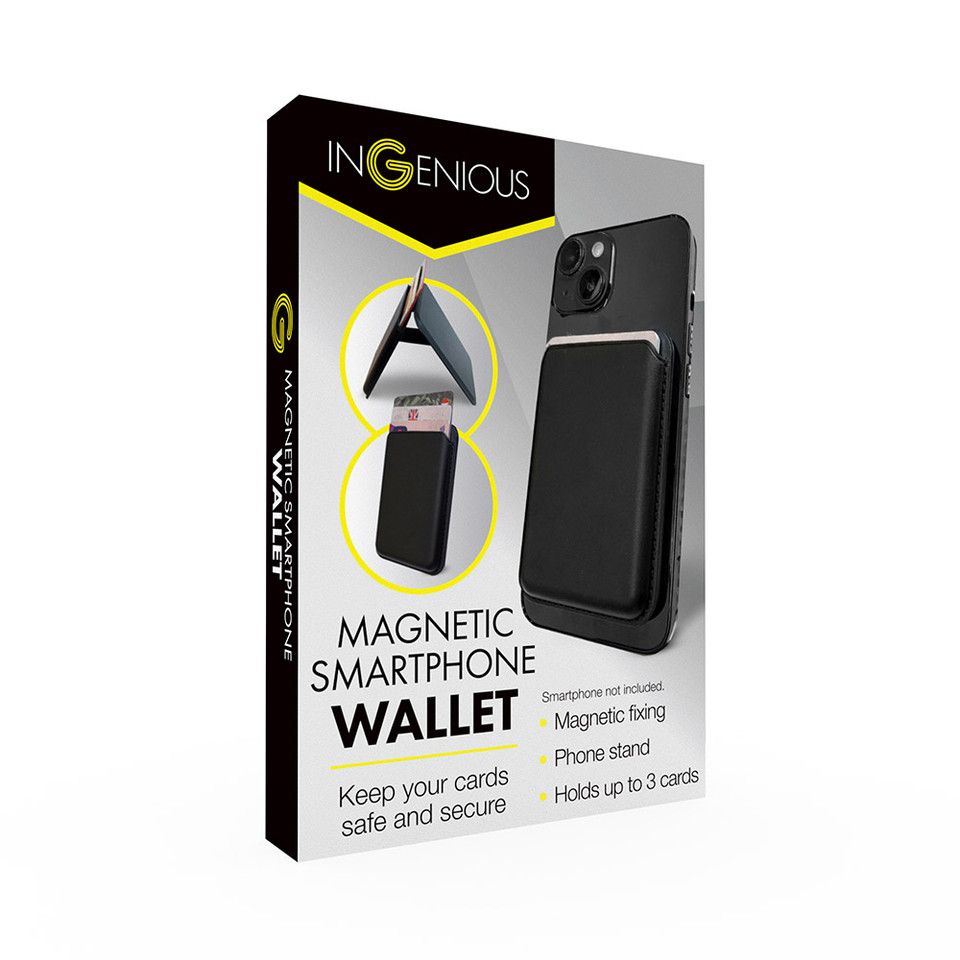 A sleek magnetic card holder that stores up to three cards and doubles as a handy phone stand. Lightweight, stylish and perfect for everyday use or travel.