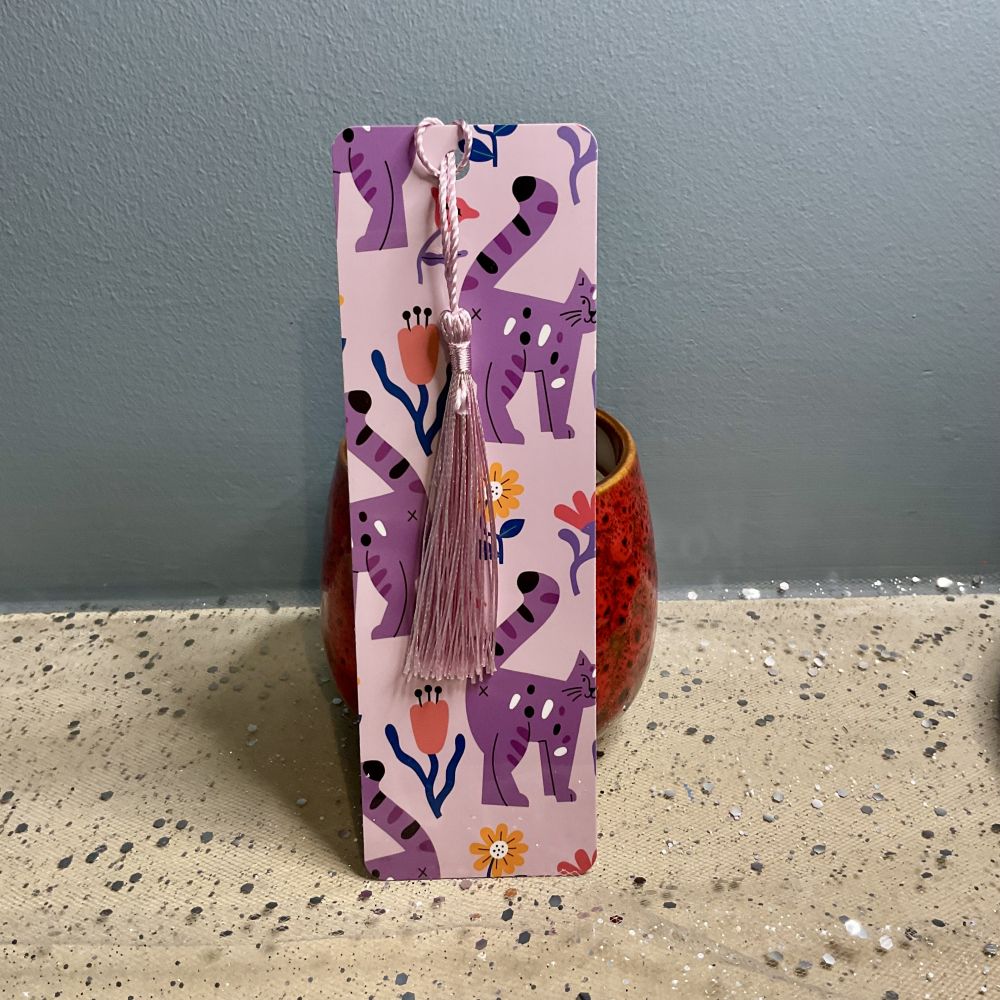 Double laminated bookmark with a cat design.