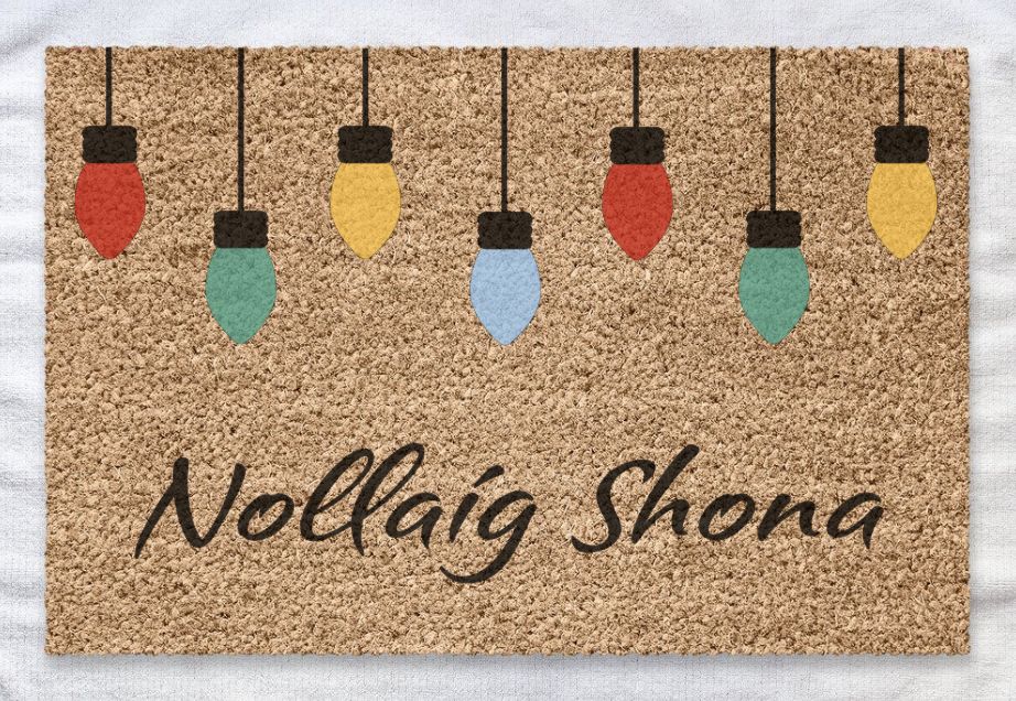 Nollaig Shona meaning “Happy Christmas” is part of our As Gaeilge doormat range.