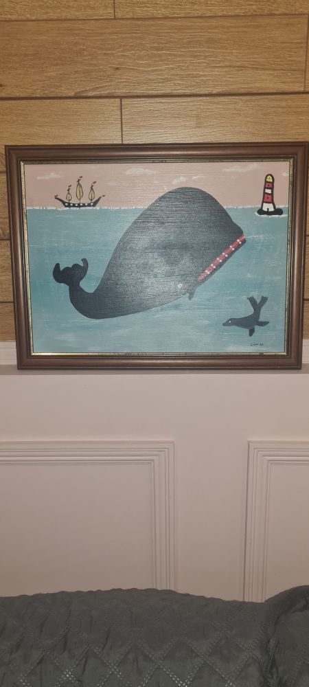 Painted in Contemperary Minimalist Niave style and influenced by folk art nautical scenes.