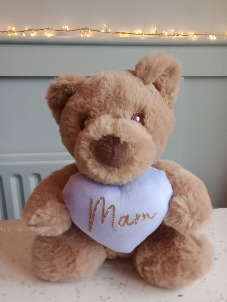 Personalised Bear with Purple Heart Teddy Gift Plush 18cm Toy Mothers Day