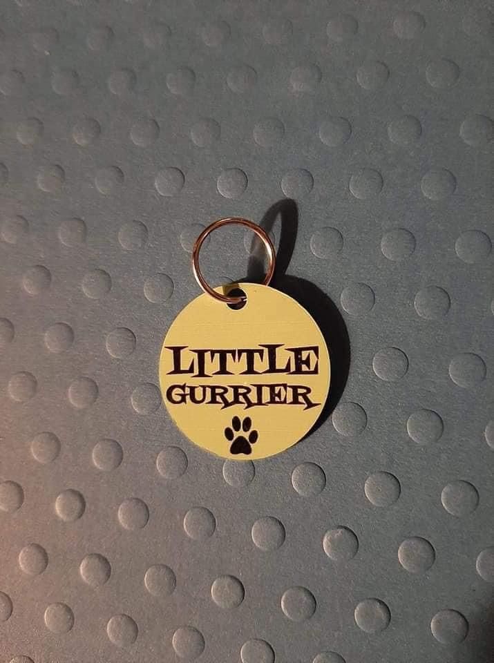 Little gurrier metal dog tag with personal details on reverse. A fun gift idea for your Dog or the Animal lover. Please click on our store name above COTTONHOUND to see our full range of products.