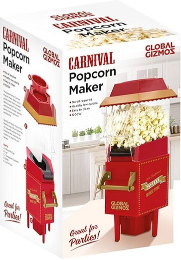 At Gadget Man Ireland we have the Elgento Popcorn Machine in store in store and online. Enjoy all the fun of the fair, or the cinema, at home, with the elgento Popcorn Machine. A fantastic little appliance that’s great for parties! Featuring a classic fairground cart design, this playful, portable popcorn producer will have you cooking up light, airy and delicious popcorn within minutes of opening the box. This fun and easy to use machine lets you enjoy a fresh popcorn snack at home in no time at all. Simply fill the machine with popcorn kernels, and the hot air will get to work creating your delicious treat