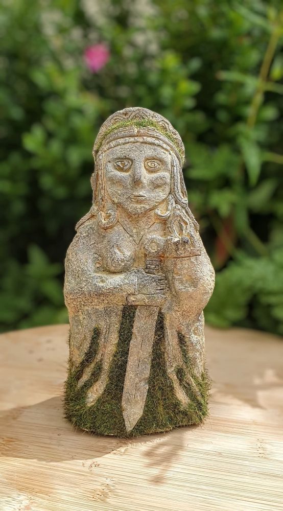 Saint Brigid - Celtic Triple Goddess. Stands 6" high, 3" wide. A substantial piece with highly authentic stone finish. Perfect for altars or home display.