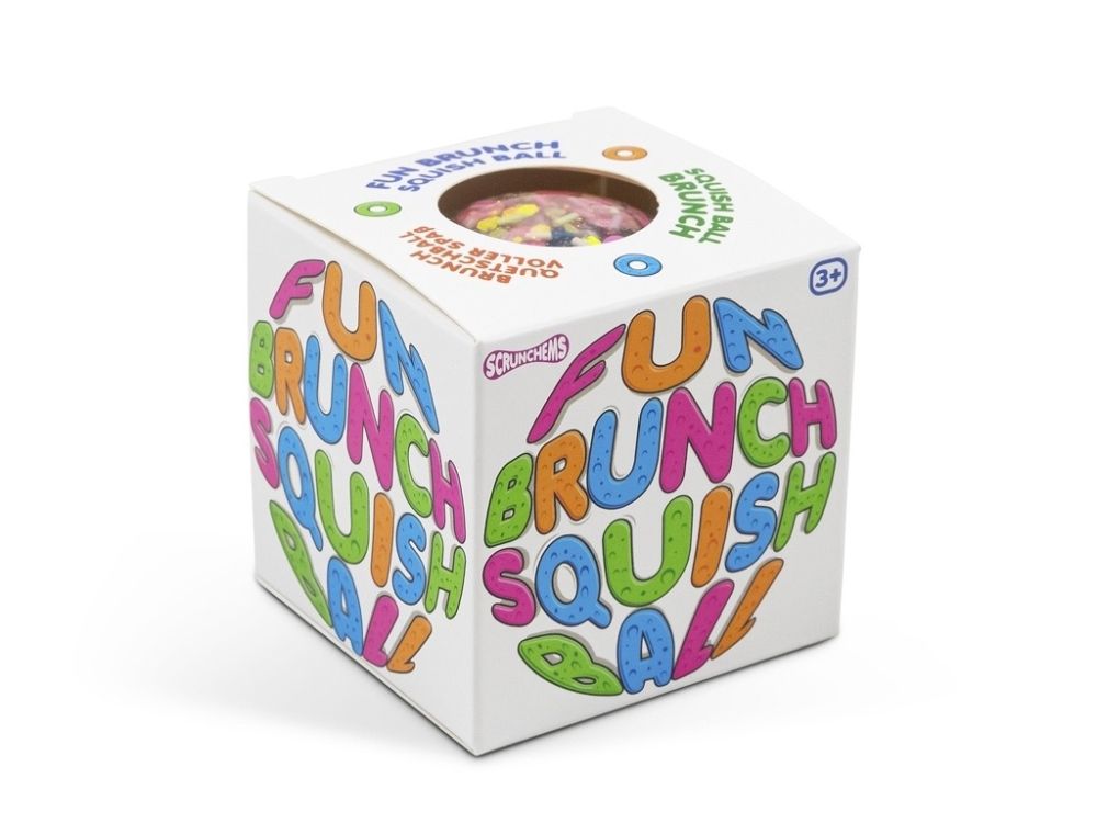 Relax and unwind with the fun and colourful Scrunchems Fun Brunch Squish Ball, a soft and squishy stress ball filled with adorable mini breakfast designs.