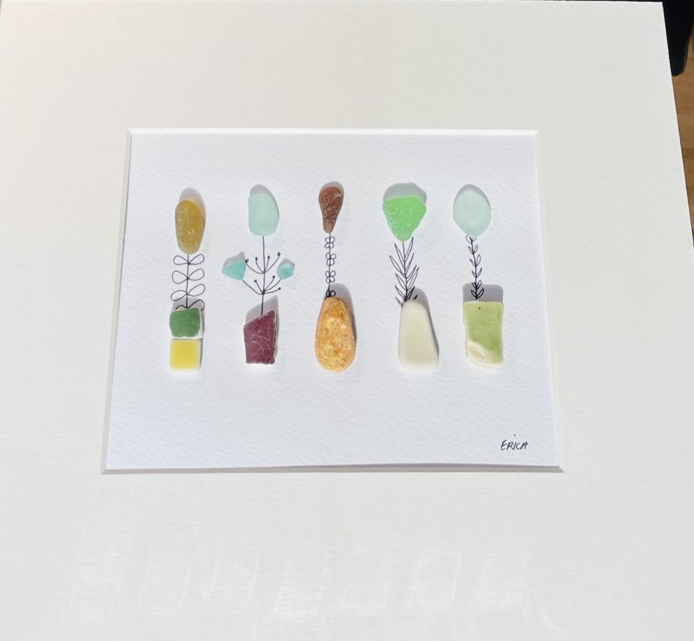 My name is Erica, I create unique Sea Glass Art using materials collected from the rocks and beaches of Sandycove and Seapoint , Co Dublin. All materials are sourced locally and are sustainable! All pieces are unique and come framed, ready to hang. Free postage in Ireland.