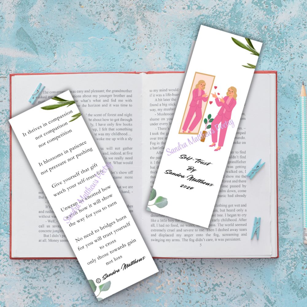 SElf Trust Poetry Bookmark with tassle. Thoughtful gift. 6" x 2" 400 gsm.
