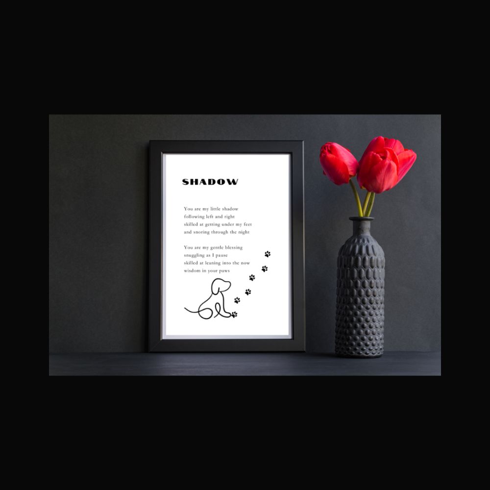 Shadow. Framed Poetry. Pet Lover's Gift or Home Display. 8"x6"