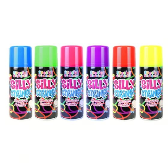 - Colourful silly string spray for parties and celebrations.