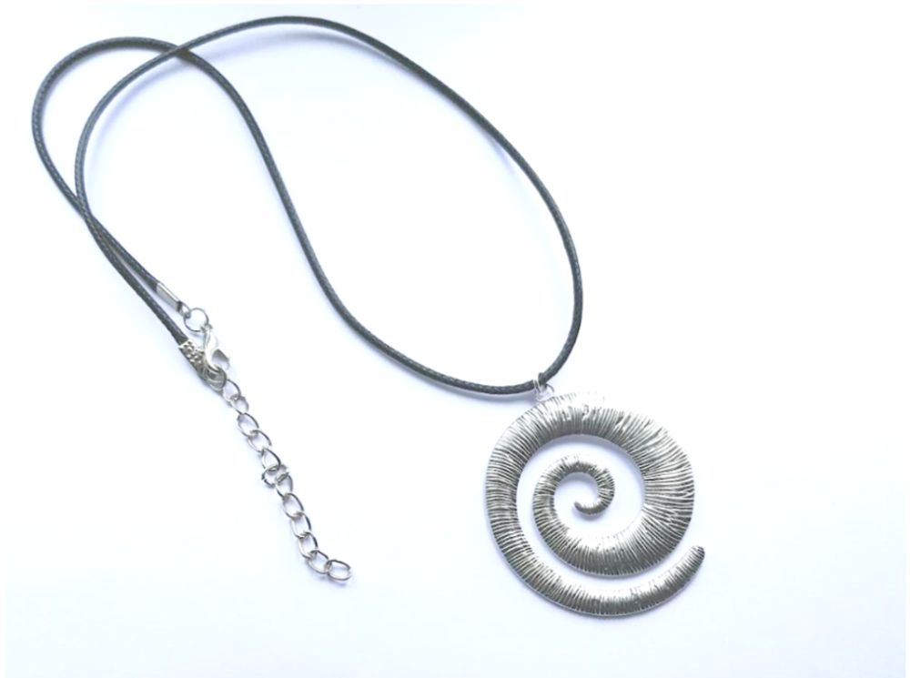 A gorgeous polished stainless steel spiral pendant ( approx. 4.8cm/1.88ins ), suspended from a sleek black cord with extension chain. (The cord is approx.45.7cm/18ins in length, plus extension chain is approx. 5,08cm/2ins in length) A beautiful, versatile pendant, lightweight and easy to wear…. Enhance your look with this gorgeous piece! It arrives in a pretty organza bag, and has free shipping.