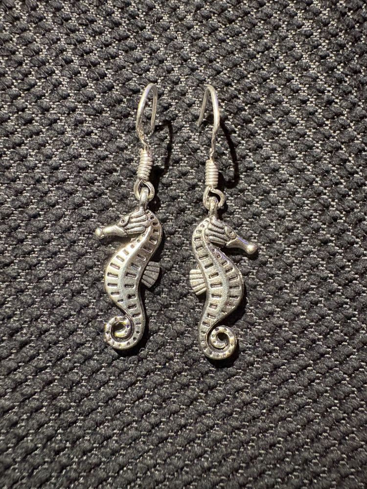 Stripy seahorse earrings with fish hook backs