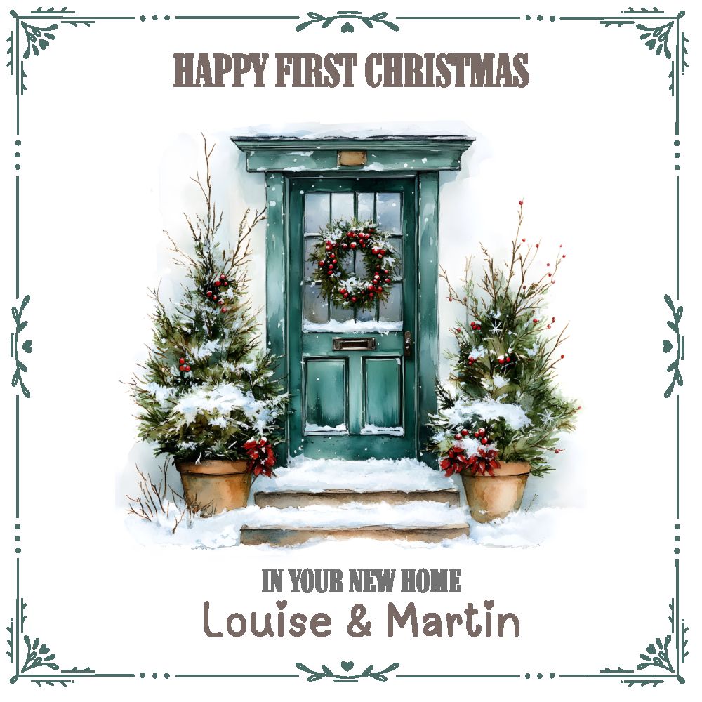 Celebrate a truly special milestone with this beautifully personalised First Christmas in Their New Home card. Featuring a charming Christmas front door design and printed on luxurious linen-textured card, this keepsake is perfect for marking such a meaningful festive season.