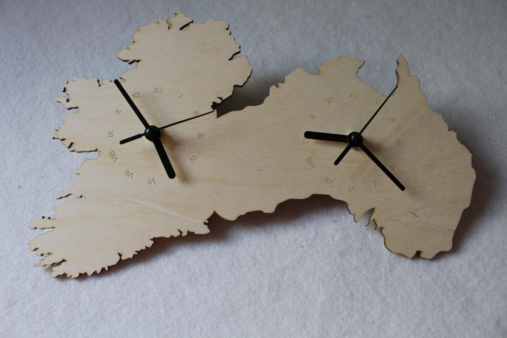 Unique Bespoke Ireland and Australia Connected Country shape clock wooden map country IE and AU clock handmade Ireland
