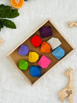 What’s included: Set of jumbo natural wood rainbow stacking stones - 10 pieces in wooden tray